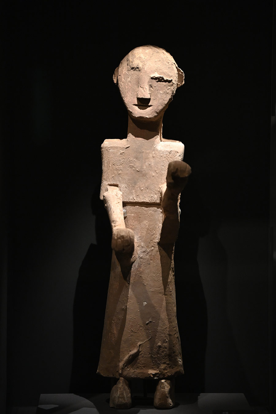 A wooden figurine is on display at Shaanxi Archaeological Museum on April 16 in Xi'an, Northwest China’s Shaanxi province. [Photo/Xinhua]