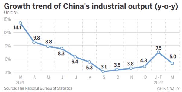 China's industrial output grew 5.0 percent year-on-year in March, reflecting the resilience of the nation's sprawling industrial economy, but more efforts are needed to deal with the increasing pressure of COVID-19 on industrial production, experts said.