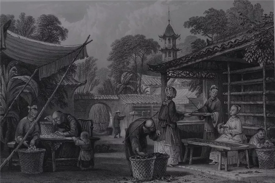 An engraved illustration of women in South China busy with silk production or sericulture [Photo/Official WeChat account of the Dongguan Keyuan Museum]
