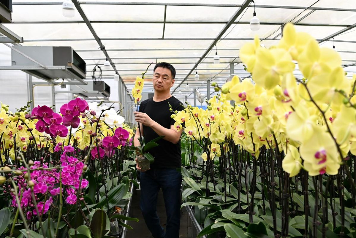 Chang's company mainly plants moth orchids in greenhouses, covering an area of more than 10,000 square meters. Last year, sales topped 8 million yuan.