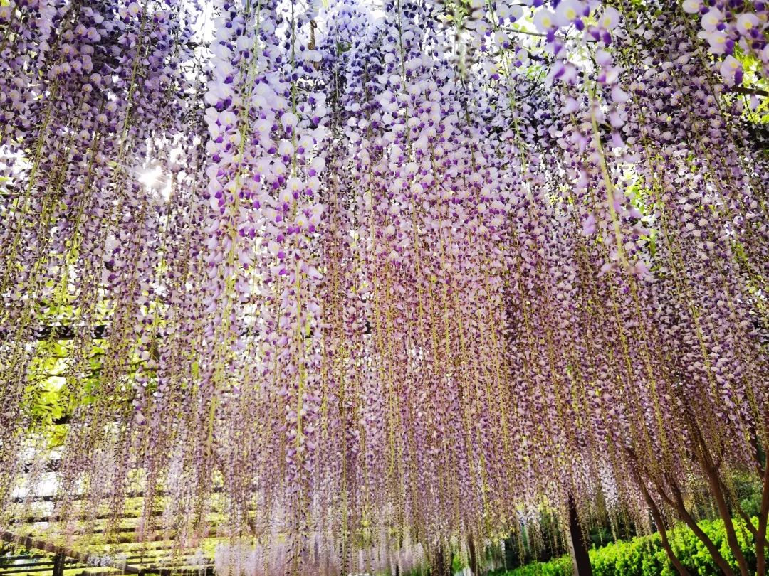 Wisteria flowers of different varieties bloom in Beijing park