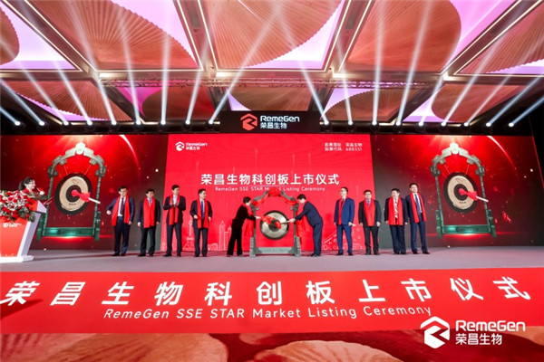 Yantai-based biotech innovator RemeGen is listed on SSE's STAR Market on March 31. [Photo/Dazhong News]