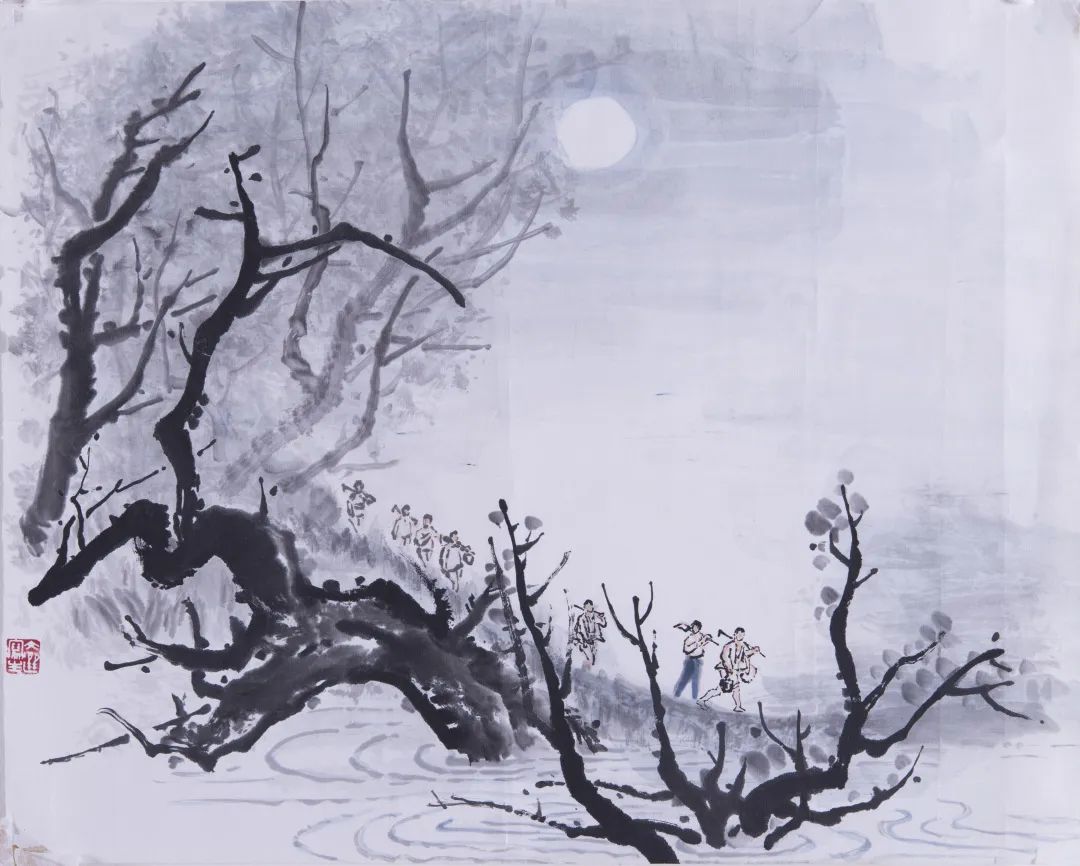 Finishing a Day's Work, Tang Wenxuan, ink on paper, 1961 [Photo/Official WeChat account of the Hubei Museum of Art]