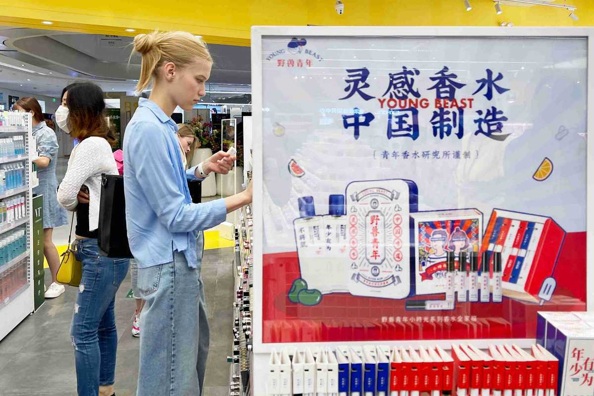 Consumers browse for perfume at a Young Beast store in a shopping mall in Beijing in July 2021. [Photo provided to China Daily]