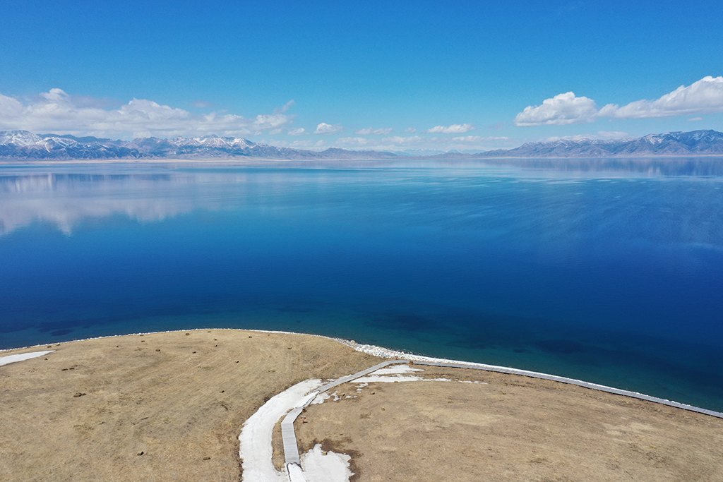 The blue water of the Sayram Lake in Northwest China’s Xinjiang Uygur autonomous region matches the azure sky. [Photo/IC]