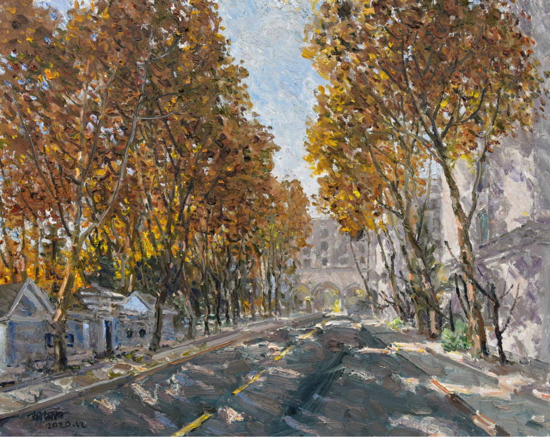 Autumn Scenery, Hu Zhaoyang (胡朝阳), oil painting, 2020 [Photo/Official WeChat account of the Guizhou Museum of Art]