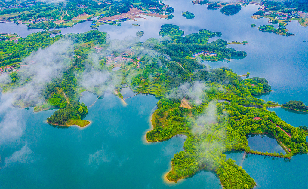 An aerial view of the Niuchehe ecological scenic area in Tuanfeng county, Huanggang, Central China’s Hubei province [Photo/IC]