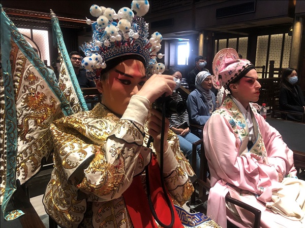 The performers of Yisu Grand Theater first performed an excerpt from the opera Hanging Paintings – a wonderful rendition that won warm applause from the students.
