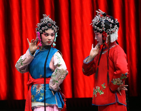 The performers of Yisu Grand Theater first performed an excerpt from the opera Hanging Paintings – a wonderful rendition that won warm applause from the students.