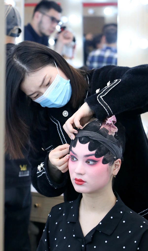 With the encouragement of Hui Minli, president of the theater, they changed into costume and followed the gestures of the professional performers.