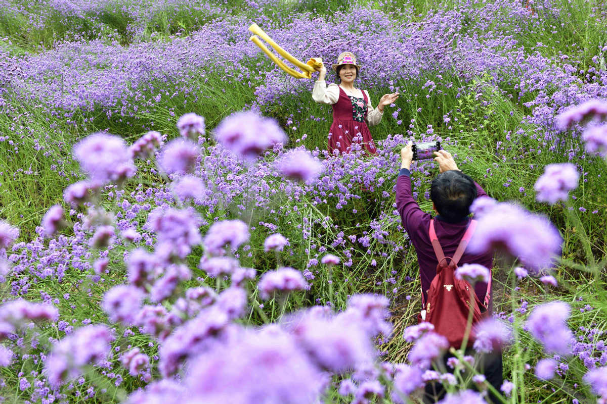 Tourists take photos in a sea of flowers in a park in Chongqing, April 30, 2022. [Photo/IC]