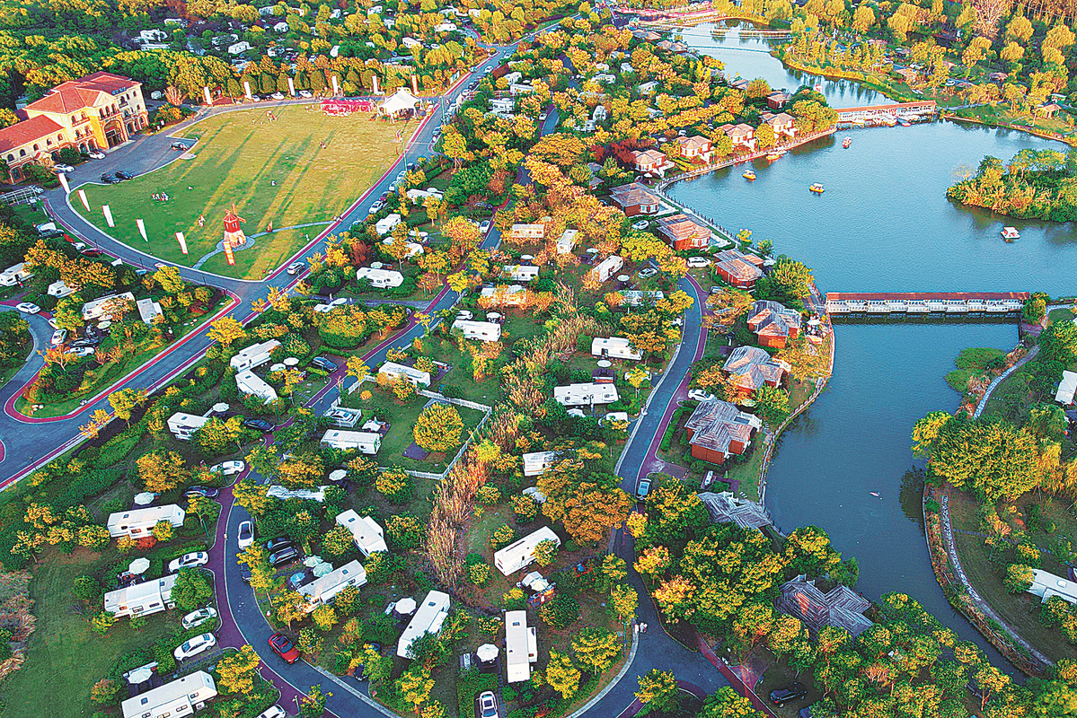 The country's leading RV provider Maxus currently has over 30 RV campsites, among which the largest is in Liyang, Jiangsu province. The site is segmented into several zones with varying functions to offer high-quality services, said a company representative.