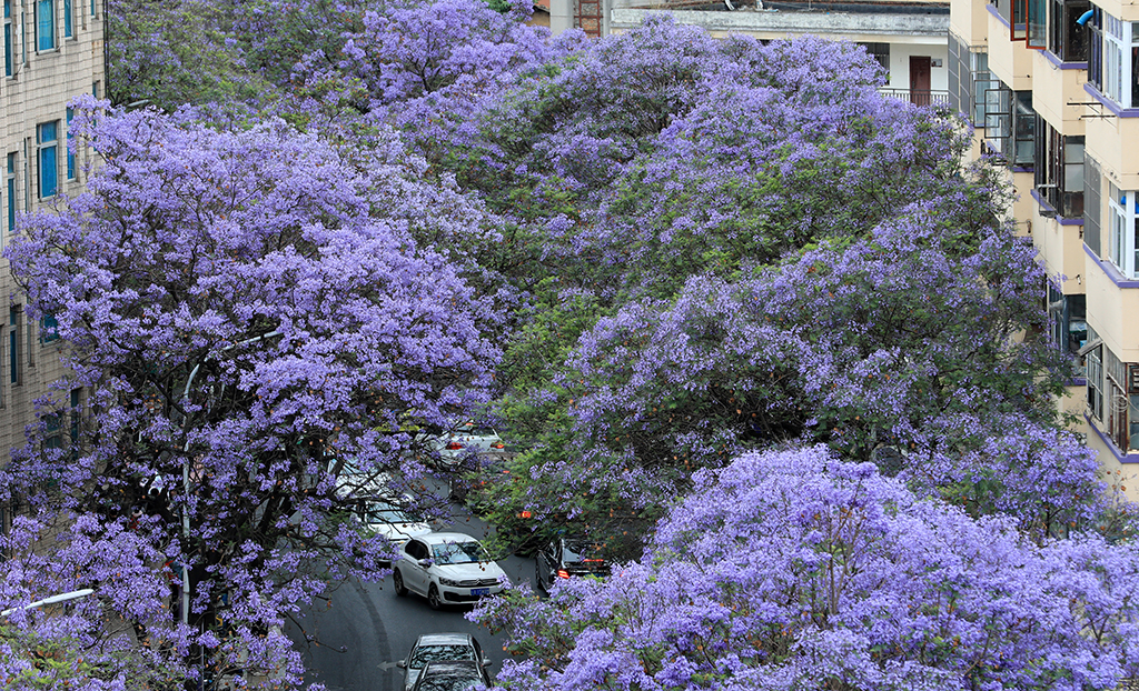 Blossoming jacaranda flowers herald coming of summer in Kunming