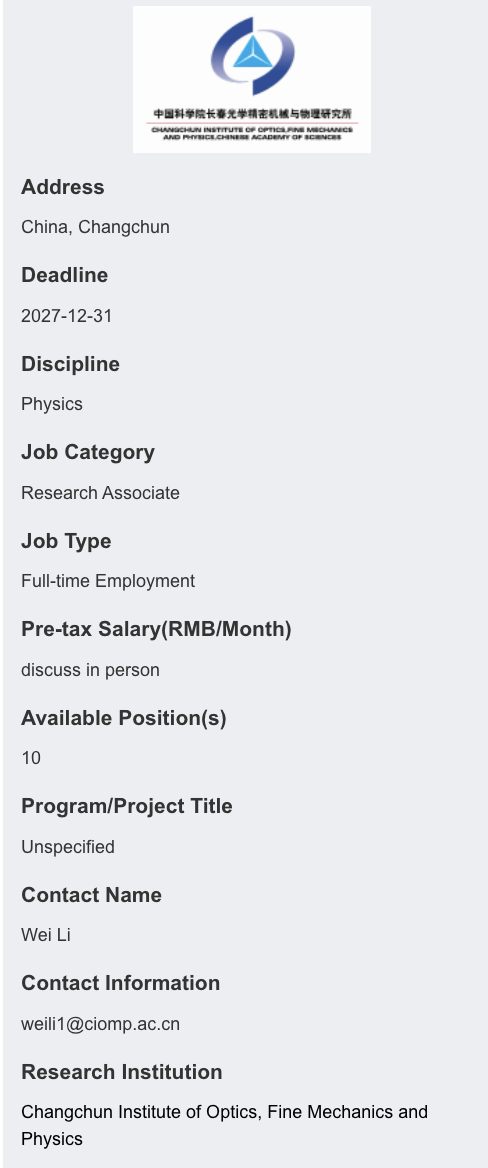 Interested candidates are welcome to contact GPL’s administrative assistant Wenting Sun (wentingsun@ciomp.ac.cn).