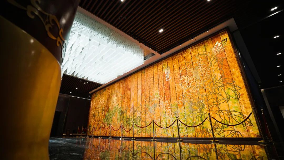 A large colored glaze mural portraying peonies on the first floor of the Peony Museum [Photo/Official WeChat account of the Luoyang Peony Museum]