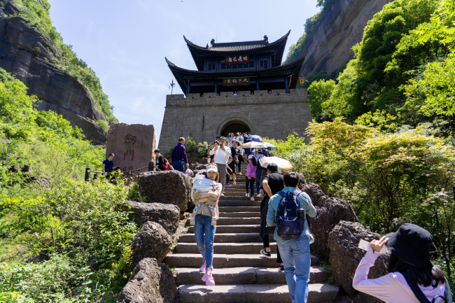 Jianmenguan, a national 5A-level scenic area in Jiange county, Guangyuan, Southwest China's Sichuan province, rolled out a 99-yuan ($14.85) ticket package to spur consumption during the May Day holiday.