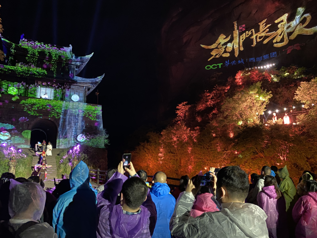 At Jianmen Pass, tourists can enjoy intangible cultural heritage folk performances and various activities of Guochao style, representing the rise of homegrown brands.