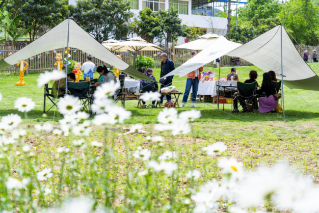Farming, catering and homestay accommodations are booming in Shuangqimei Village at the foot of Jianshan Mountain. The village launched a mountain camping activity featuring the beautiful scenery of flowers, attracting lots of tourists.