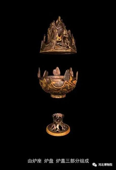 The bronze censer is composed of a base, a salver and a lid. [Photo/Official WeChat account of the Hebei Museum]