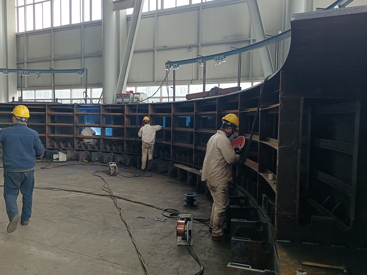 Two arched steel beams were transported from Pudong to a factory in Lingang for further processing on the night of May 9, which marked the official restart of the archaeological excavation of Boat No 2 at the Yangtze River Mouth.