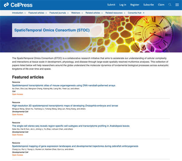 Featured article collection on SpatioTemporal Omics Consortium (STOC) webpage in Cell