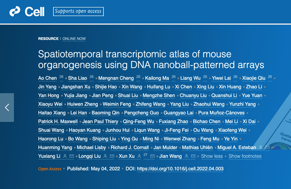 The paper, Spatiotemporal transcriptomic atlas of mouse organogenesis using DNA nanoball-patterned arrays, is published in Cell. The other three studies on Drosophila, zebrafishand Arabidopsisare published in Developmental Cell. Identifying the characteristics of specific cells within a tissue has significant applications for understanding which cells are causes or indicators of disease, potentially leading to future gains in human disease research.
