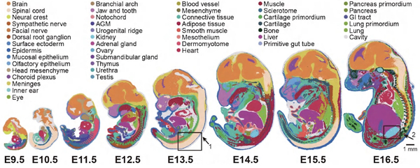 For the first time the scientists were able to produce a series of high-definition maps showing the precise location of the roughly 300,000 cells from the day 16.5 embryo. BGI-Research used this information to produce a panoramic atlas of the mouse and gain insight into the molecular basis of cell variation and differentiation in developing tissues of the brain, including the dorsal midbrain.