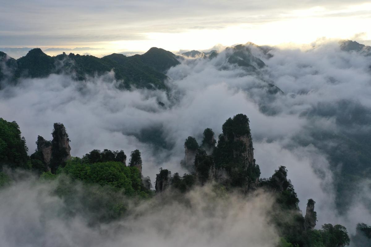 Clouds above mountains at sunrise were captured in the Wulingyuan scenic area of Zhangjiajie, Hunan province. [Photo by Zhou Jianxin/Provided to chinadaily.com.cn]