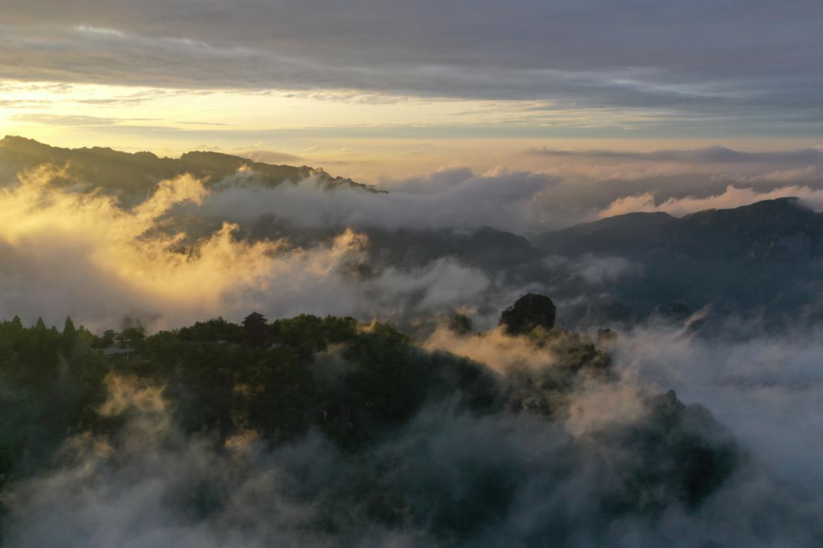 Clouds above mountains at sunrise were captured in the Wulingyuan scenic area of Zhangjiajie, Hunan province. [Photo by Zhou Jianxin/Provided to chinadaily.com.cn]