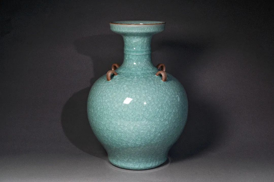 Celadon vase with dish-shaped rim and small cracks [Photo/Official WeChat account of the Zhejiang Provincial Museum]