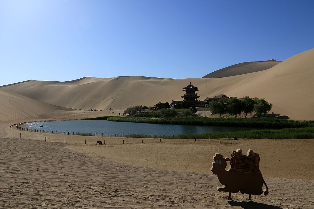 Gansu desert showcases picturesque moon-shaped scenery