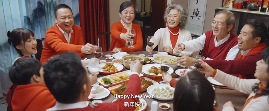 Lin works away from home. On Spring Festival Eve, she traveled home to reunite with her family. Their festival activities start with shopping, cleaning and decorating the home, and making dumplings. They then enjoy the family reunion dinner while watching the annual Spring Festival gala together.