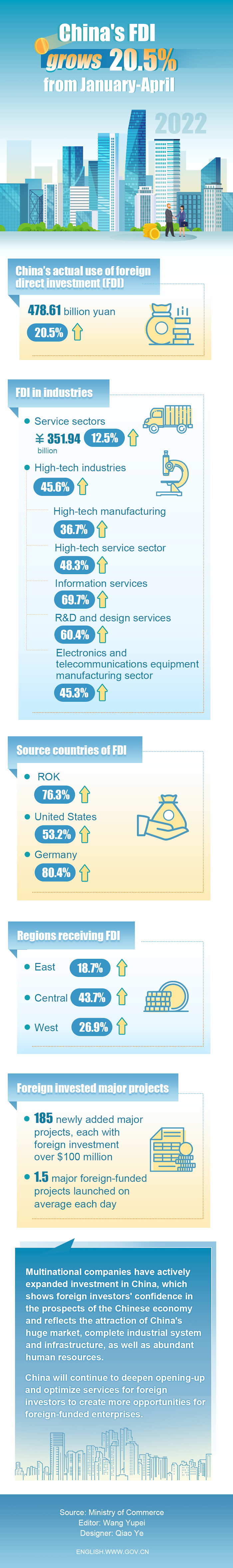 China's FDI grows 20.5% from January-April