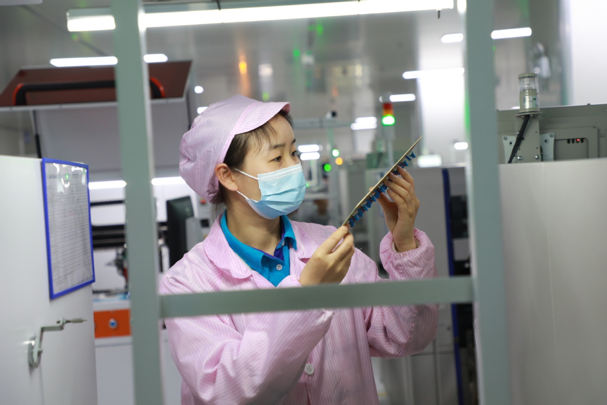 A worker checks electronic products for export in Meishan, Southwest China's Sichuan province on May 18, 2022. [Photo/IC]