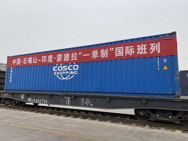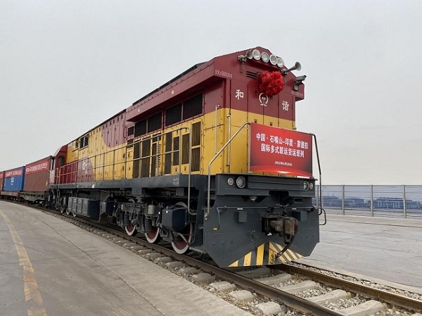 On April 29, an international multimodal freight train that will run from Shizuishan, Ningxia Hui autonomous region to Mundra, India was launched on the Ningxia Fuhai logistics railway.