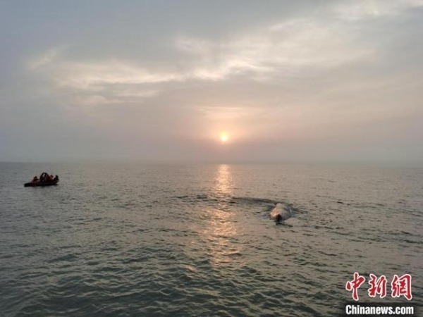 Rescuers have evacuated a whale stranded ashore to deep waters in East China's Zhejiang province after 20 hours of a rescue operation.