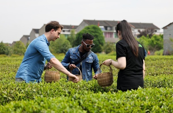 Eight foreign expats in Shaoxing, Zhejiang province, visited the beautiful countryside together with local residents on Friday to listen to the stories of entrepreneurs and their shared prosperity in the tea business.