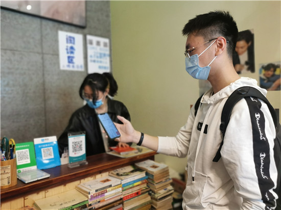 A man scans the e-CNY QR code of a shop to pay for goods. [Photo/thepaper.cn]