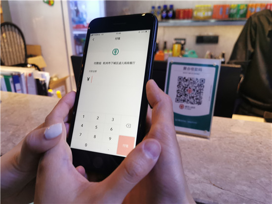 A resident of Hangzhou pays a bill with digital renminbi. [Photo/thepaper.cn]