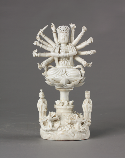 White-glazed sitting Bodhisattva with 18 hands, Dehua ware, Ming Dynasty [Photo/Official WeChat account of the Anhui Museum]