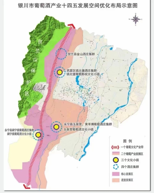 Yinchuan, as the starting point and the core area for the development of the Ningxia wine industry, has a planting area of 252,000 mu (16,800 hectares) and an output of 75,000 tons of wine grapes. A total of 66 chateaus have been built and put into production, with an annual output of 480,000 tons of wine. There are 12 branded wineries with an annual sale of more than 20 million yuan, seven technology innovation platforms like technology innovation centers and key laboratories, six AAA-level above tourist wineries (three AAAA wineries and three AAA wineries) with an annual tourist number projected at 500,000 people times and the total industrial output value of 23 billion yuan.