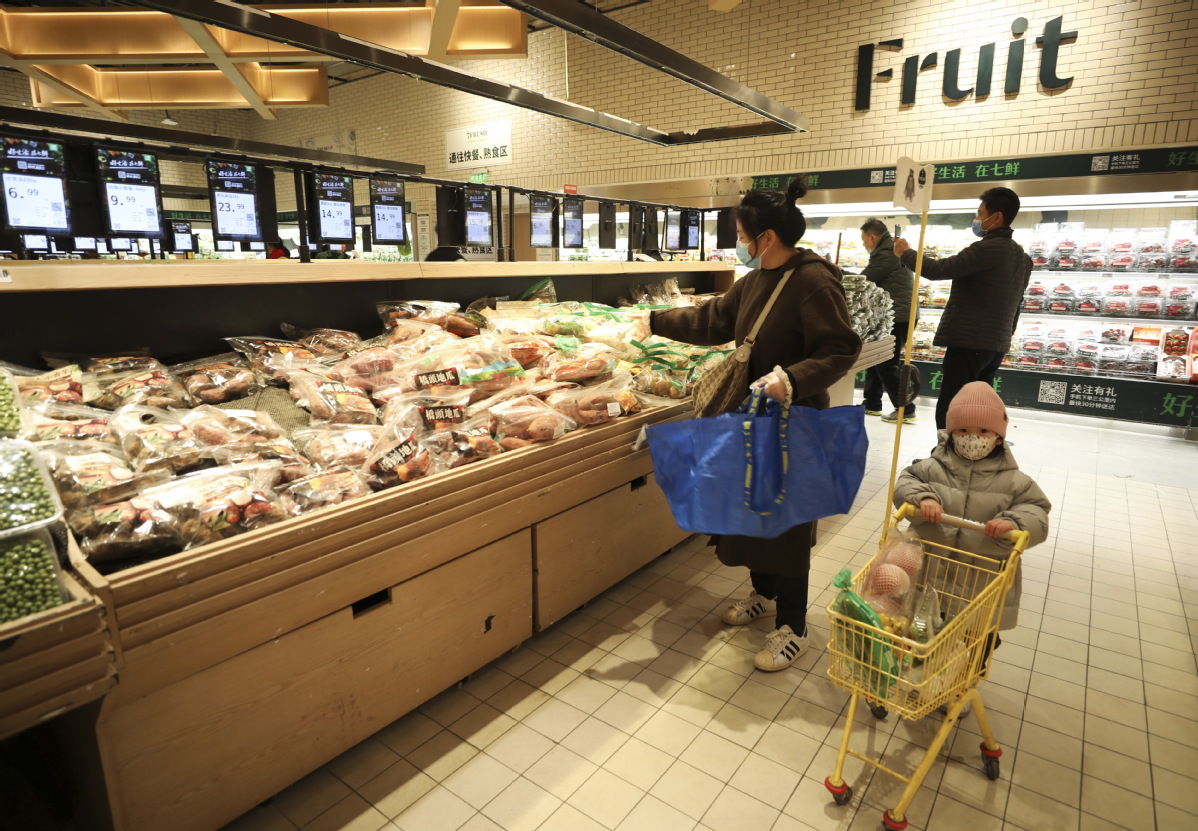 People shop at a JD offline supermarket in Beijing. [PHOTO BY ZHAO JUN/CHINA NEWS SERVICE]