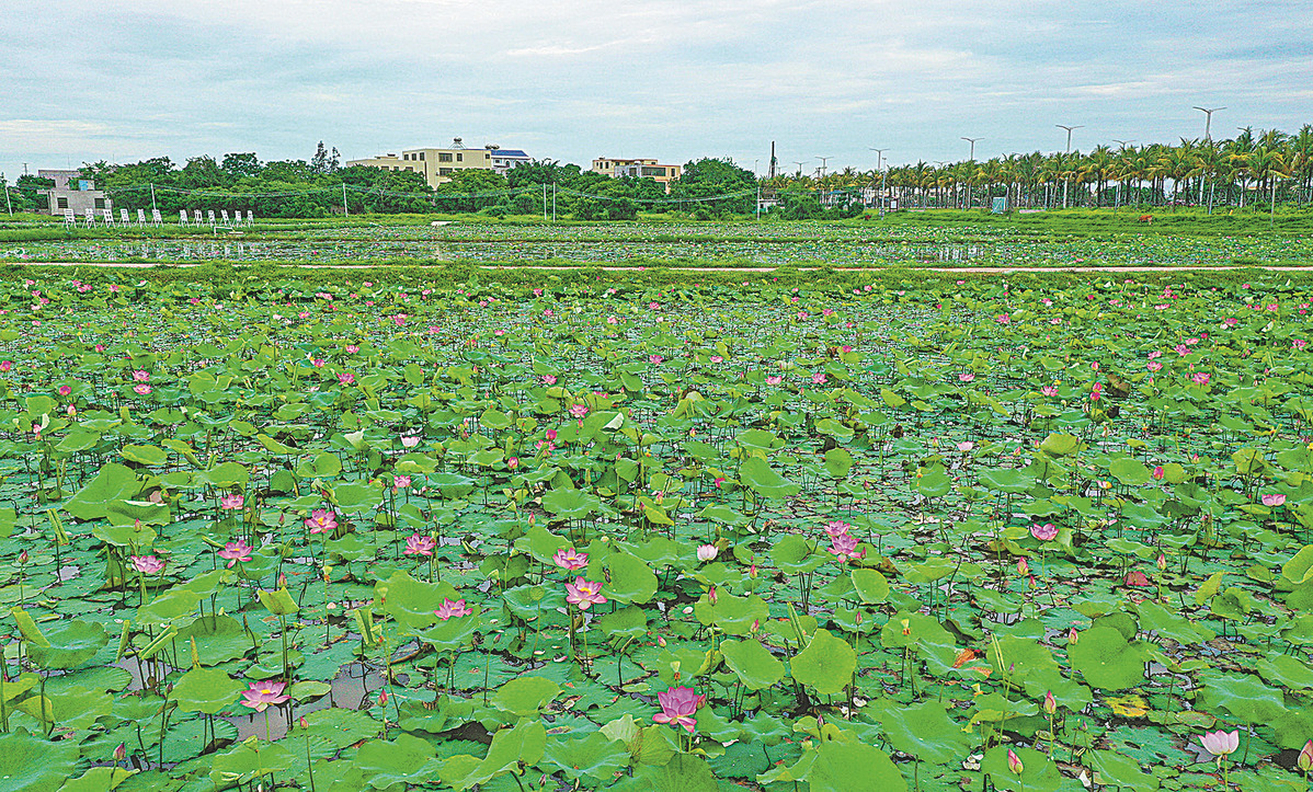 A large, newly created park planted with "space lotuses" is making Zhongkai village, a former revolutionary area, more attractive, as crowds of residents and tourists come to visit this Red site located in Jiangdong New Area in eastern Haikou, an industrial park part of the Hainan Free Trade Port.