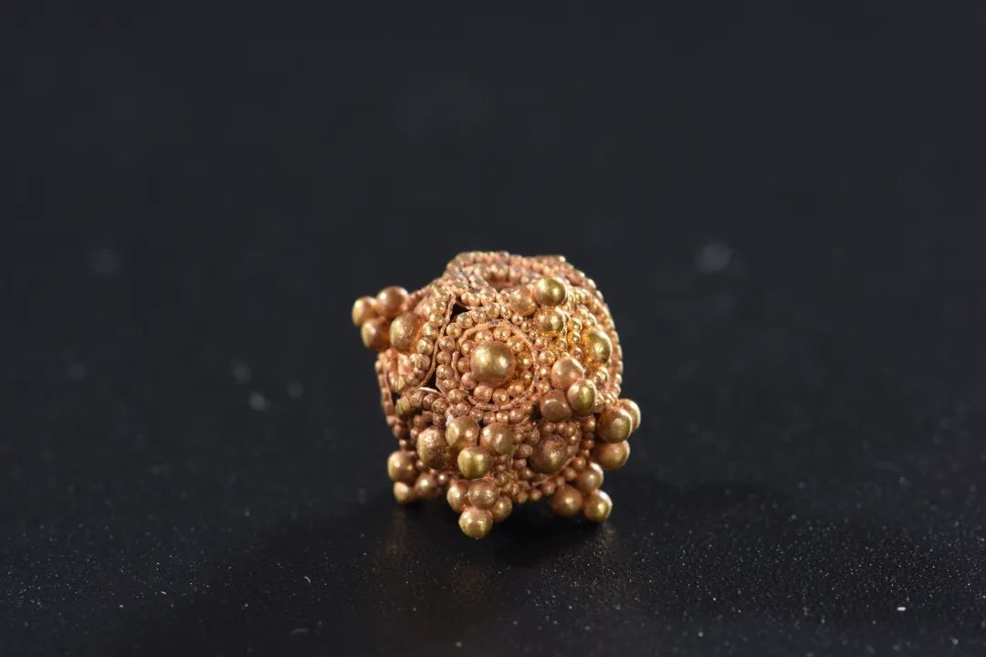 A beads-studded gold bowl ornament dating back to the Eastern Han Dynasty (25-220) [Photo/Official WeChat account of the Museum of Two Mausoleums of South Han State]