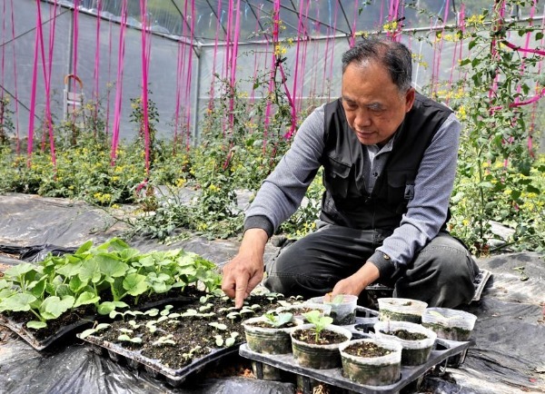 Chung is carefully observing the growth state of seedlings. [Photo by Zheng Qiusheng/For chinadaily.com.cn]