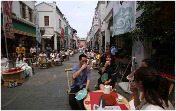 In addition to the opening ceremony, a Chaozhou kungfu tea feast was held along Dongmen Street, with attendees sitting in bamboo chairs and drinking kungfu tea. The "100 counties gather for celebration" activity was carried out to advance the construction of the "12221" marketing system for the tea industry in Guangdong.