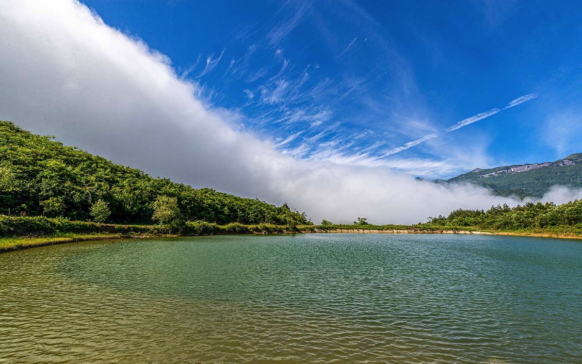 Waterfall of clouds over Chongqing mountain a tourist attraction