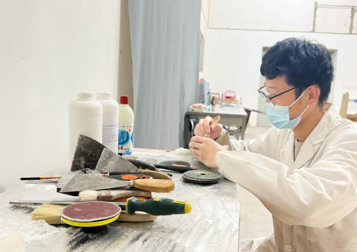 Adhesive material is used in the restoration of murals. [Photo provided to chinadaily.com.cn]