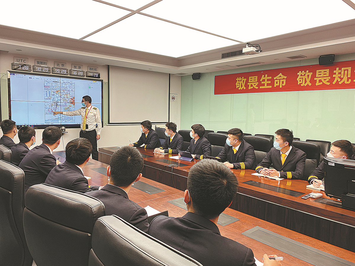 Farinon speaks to fellow pilots during a technical seminar organized by the airline. [Photo/China Daily]
