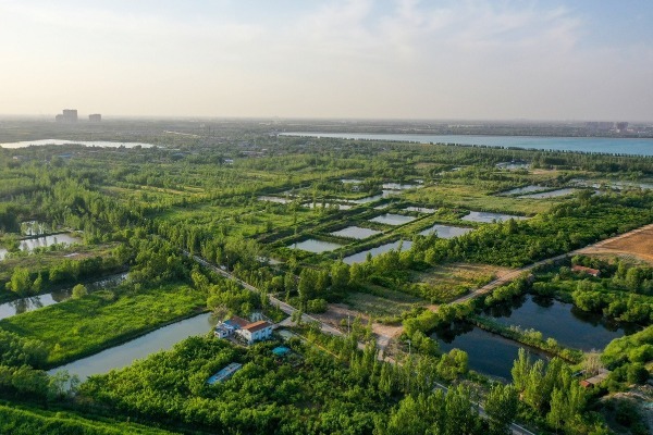 Photo shows an aerial view of fish ponds at Longhu Wetland Park in Jinan, East China's Shandong province, May 17, 2022. [Photo/IC]